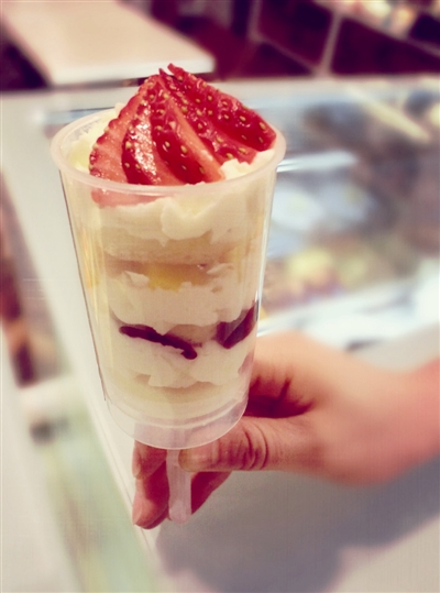 温州的推筒蛋糕以加草莓、柠檬等水果居多。佩诗摄