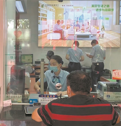 市区一邮储银行网点内,客户正在办理金融业务。 杨帆 摄