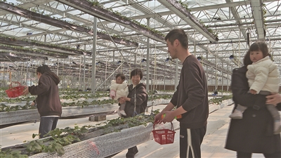 龙港市沿江省级现代农业园数字化无土栽培技术种植的草莓,吸引了不少消费者前往体验。 金君 林武 摄