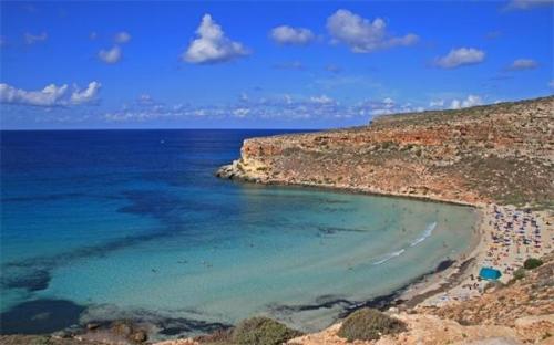 西西里岛的兔子海滩是世界上最美的海滩之一,在这样的海滩做服务员自然会让不少人羡慕。
