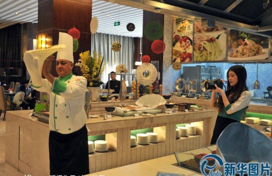 2013年12月19日,北京,来自天津南开大学的张欣妍是一名传说中的“酒店试睡员”。在餐厅用餐时,酒店安排了一位印度大厨来教她品尝手抓饭,欣妍说:感觉跟印度人在一块交流本身就是一个很亢奋的状态,我问他怎么吃饭,他就直接告诉我用手抓,我当时试了一下,为什么我的手这么不灵活。那个拌饭吃起来味道有咖喱的刺激感,另外也是我第一次吃手抓饭,真是用手来吃,现在还能感觉到咖喱味在上面。大厨很热情,也是餐厅很特色的一部分吧,我很少见到在酒店有印度餐厅。看着大厨抛饼,欣妍一直举着手中的相机拍个不停。 |