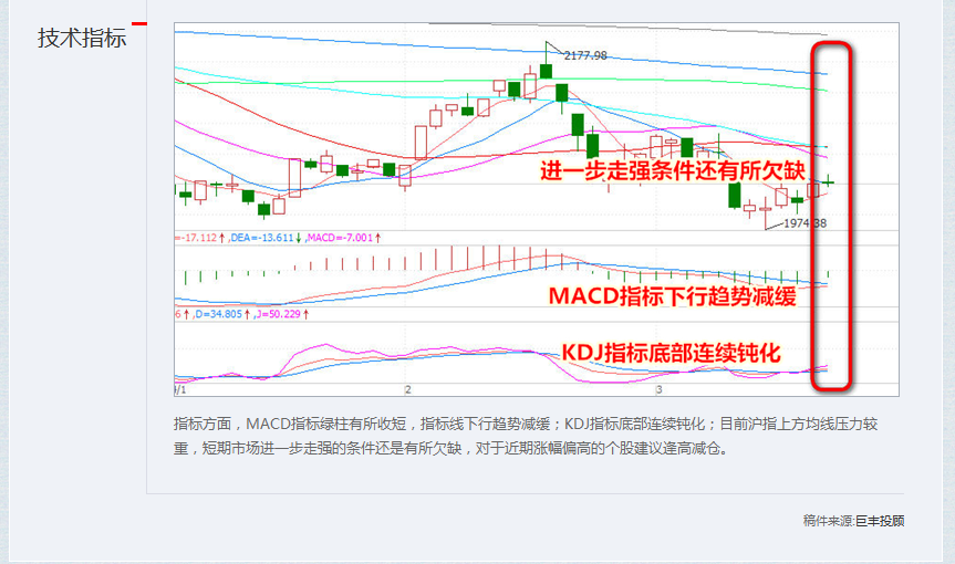 指标方面,MACD指标绿柱有所收短,指标线下行趋势减缓;KDJ指标底部连续钝化;目前沪指上方均线压力较重,短期市场进一步走强的条件还是有所欠缺,对于近期涨幅偏高的个股建议逢高减仓。