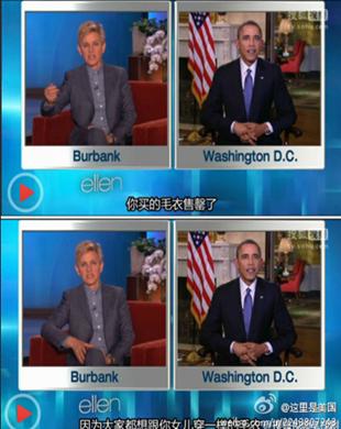 米嫂出门了,留守老公奥巴马连线艾伦秀时表示:整个白宫都荒掉了,女儿们不爱理他,奥君很伤心。而艾伦的奥斯卡自拍破了他的推特转发记录,也让总统先生不开心。艾伦说到奥巴马之前逛Gap引发了类似的中国“庆丰包子铺”效应,他为女儿挑选的毛衣脱销了,因为大家都想跟他女儿穿一样的毛衣......