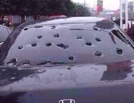 当天下午,出门办事的金先生正在市内道路上正常行驶,突然间听到车身发出霹雳啪啦的声音,透过前挡风玻璃,金先生看到自己车前盖被一团团从天而降的“白球”砸出一个个大坑。“几分钟后车顶上全都是凹陷的小坑,好大的冰雹,好恐怖啊!”回忆当时的情境,金先生仍然心有余悸。无奈之下,金先生随即拨打了安邦客服热线95569报案。“这位客服人员告诉我,通过安邦保险已经认证的微信号可以实现快速理赔,我刚开始还半信半疑的。”