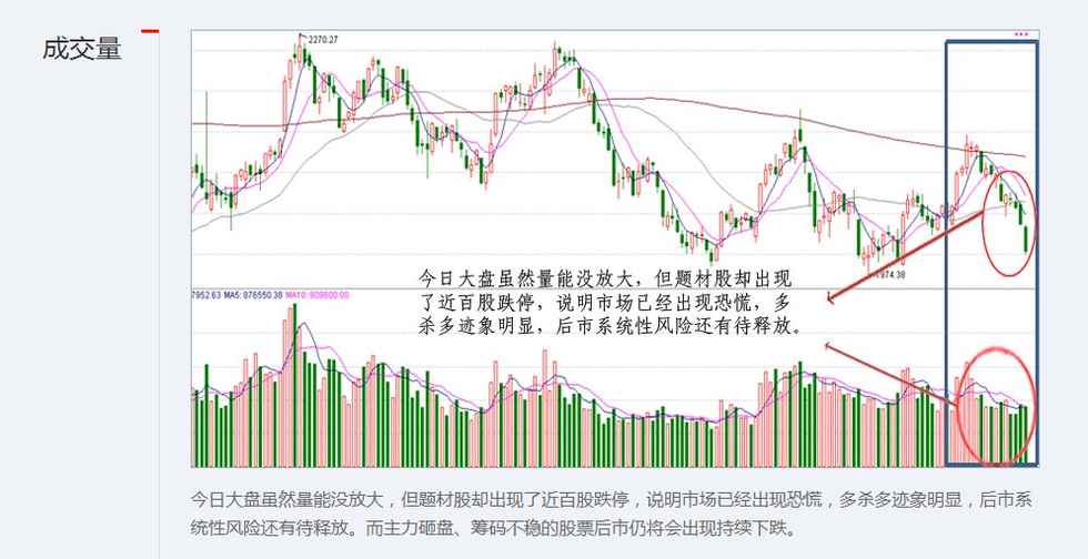 今日大盘虽然量能没放大,但题材股却出现了近百股跌停,说明市场已经出现恐慌,多杀多迹象明显,后市系统性风险还有待释放。而主力砸盘、筹码不稳的股票后市仍将会出现持续下跌。