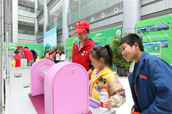 当天下午,在智能服务之家讲解员的带领下,孩子们了解了“智能楼宇”模型展示的光伏发电、配网自动化、楼宇设施控制、能耗分析等智能设施运用;“电动汽车”带来的新能源汽车环保、低碳和经济的消费理念;“智能电网”展示的电网的发展历程与趋势;“智能家居”展示的即将到来的智能家庭时代。服务厅内“居民节电知识”、“绿色照明”、“行业节电”、“设备节电”等功能展项从不同角度展示了节能减排知识,并教育引导孩子们养成安全用电、节约用电的良好习惯。最后观看了“电宝宝”视频,讲述了电力如何从风能、水能、太阳能中产生,并通过输电、变电、配电进而点亮千家万户的全过程,形象直观而生动有趣地展示了电力知识。