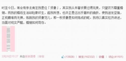 著名演员刘涛自从嫁给年轻企业家王珂之后,一度相夫教子过起了阔太生活。但遇到金融危机之后,王珂事业一路下滑,隐退的刘涛复出养家。对王珂一直不离不弃,被赞娱乐圈“贤妻”。刘涛在微博上自揭贤妻成长记,还详细曝光了老公事业失败后抑郁、吃药的经历。