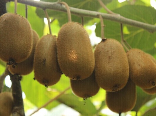 在这海拔600多米的高山上,一眼望去全都是猕猴桃的种植园,从远处观看一片一片的猕猴桃棚架层次分明,分布密集却没有杂乱感,给人一种排列有序,规范合理种植的感觉。从近距离观察又是另一番风景,每个棚架上挂满了肥大的猕猴桃,形状各样,走进了更是能够闻到猕猴桃的香味,触摸以后发现猕猴桃还是非常硬。调查团向岩绿猕猴桃专业合作社社长陈岩绿询问后得知,这里的猕猴桃还要2个月才能成熟,所以现在手感较硬,相信2个月以后这里的猕猴桃肯定非常美味。
