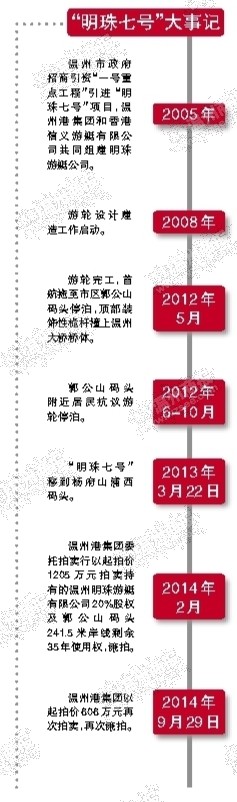 “拍卖只是投资明珠游艇公司的温州港集团的经营策略调整,拍卖成功与否,股东是否变更,对我们没有什么影响。”徐斌说,2005年被温州市政府作为当年招商引资“一号重点工程”引进后,温州港集团以郭公山码头241.5米岸线15年使用权作价125万美元占股20%,与香港信义游艇有限公司共同组建了明珠游艇公司。“实际上,2年多停泊和股权拍卖期间,我们一直按照项目的推进计划,努力克服困难,现已实现通电等配套的到位,接下来的事情就好办了”。