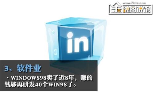 WINDOWS98卖了近8年,赚的钱已足够再研发40个WIN98了。