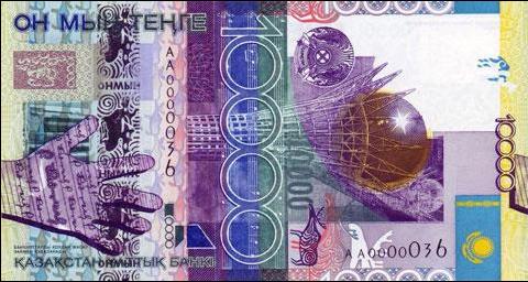 2.面额:万元坚戈。国家:哈萨克斯坦。一万元坚戈是第一种使用安全丝(security thread)的钞票,安全丝在钞票两面均清晰可见。安全丝具有独特的标记,而且还是透明的,下面多出的安全特性即看得清清楚楚。