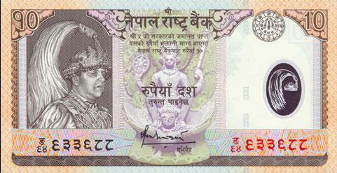 6.面额:10元卢比。国家:尼泊尔。尼泊尔的10元卢比钞票有一个清晰的聚合物视窗——一般的纸张很难或不可能复制,细细的金属丝还融入到钞票之中。