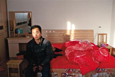 12月11日,曲周县安寨镇西马连固村,来自越南的妻子出走后,袁迎宾坐在婚床前发呆。2014年11月21日前后,邯郸市曲周、肥乡、广平等地农村发生“越南新娘”集体消失事件。