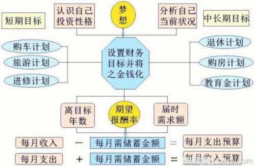 大家看明白了么?要想实现自己的小梦想,首先需要分析清自己的当前状况,弄清自己的投资性格(是稳健型的还是激进型的),然后设定短期目标和长期目标,记得尽量把目标换算成金钱,这样有了具体数值后努力方向会更加明确。之后再根据自己和目标的差距算出自己每个月的储蓄金额,然后每个月在留够了储蓄金额后,就能按照图片最下方的公式得出每月支出预算和每月收入预算了。