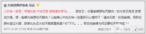 2011年5月,马云在微博上自爆"儿时有一梦想:早餐伦敦中饭巴黎傍晚漫步罗马"。但马云也表示,如今每天奔波,周游世界各国的梦想变成了无情的灾难。