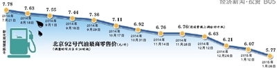 北京市发改委昨日发布通知,北京市92号汽油最高零售价从6.07元/升,下调0.3元至5.77元/升,95号汽油也从6.46元/升,下调0.31元至6.15元/升。据记者计算,北京市92号汽油,自十三连跌以来,已累计下跌2.21元/升。若以每月2000公里、百公里耗油8L的普通私家车为例,此次下调后,相较十三连跌前,每月油耗节省约353.6元。