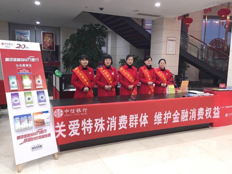 2015年3月12日-18日,中信银行杭州分行积极响应浙江省银行业协会号召,在辖内全面组织开展“关爱特殊消费群体维护金融消费者权益”----“3·15”消费者权益保护宣传周活动。