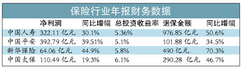 去年四大险企净利润889.45亿元同比增33.5%平均日赚2.44亿元