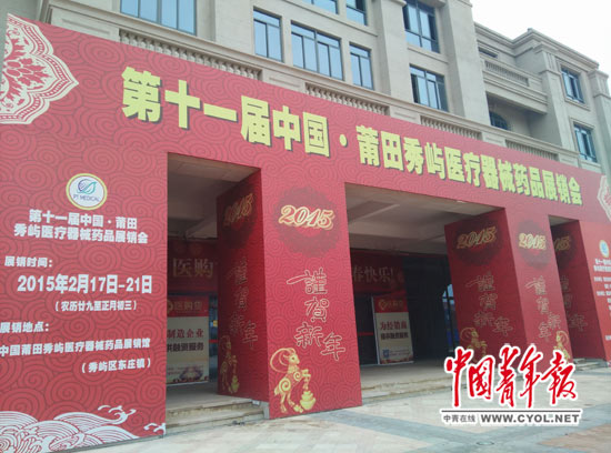 福建莆田市秀屿区东庄镇被称为医疗王国。今年2月,中国·莆田秀屿医疗器械药品展销会在这里举行,有关宣传贴纸至今仍未揭下。本报记者卢义杰/摄