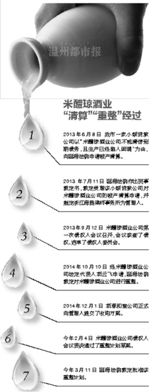 昨天,该企业的管理人收到瓯海法院的裁定书。此前,这家百年酿酒企业因担保和互保等原因陷入困境,被申请破产清算后,又转入破产重整。日前,瓯海区人民法院作出裁定,批准米醴琼酒业公司破产重整计划。