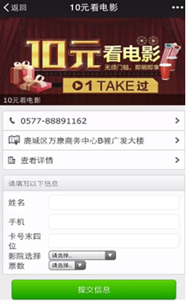 享受完第一季“逢双有折”的5折美食后,更不能放过“10元看电影”的机会!微信粉丝们!你们有福利啦!此次“10元看电影”与往常有所不同,通过官方微信平台即可预约。