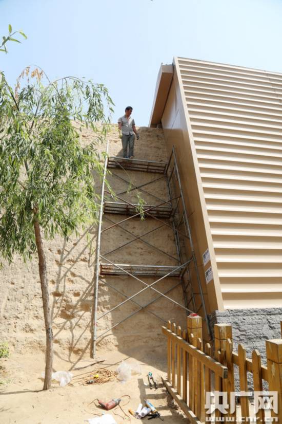 在郑州市紫荆山路与城南路交叉口的商代古城墙外部,建筑人员正在加盖一个土黄色的“保护壳”,千年商都遗址仿佛披上“黄金甲”,吸引了众多行人驻足观看。
