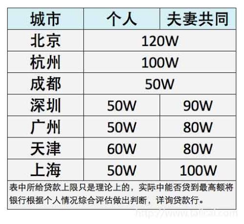 目前几大主要城市公积金贷款最高限额如下(数据仅供参考):