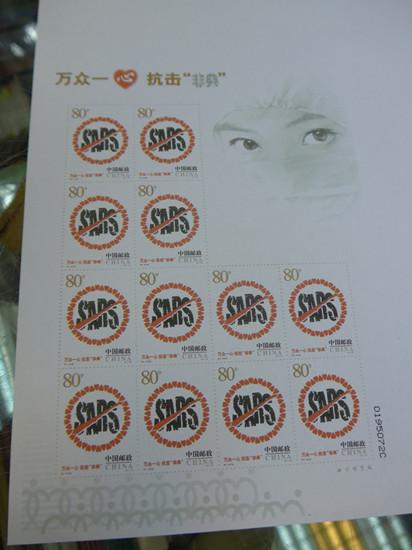 “非典”邮票,现在炒价约五千元人民币。图自香港《大公报》