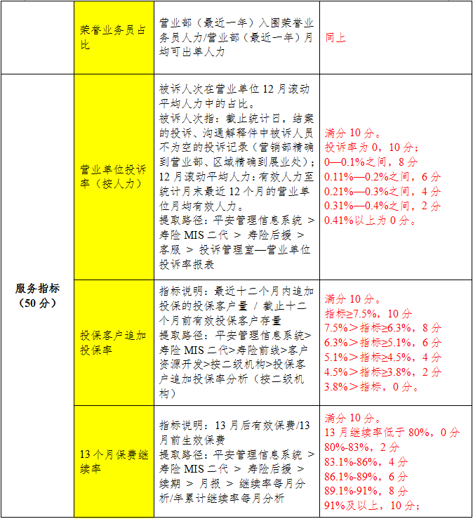 (二)分(支)公司对营业部/课进行评选推荐的指标及评分说明如下表: