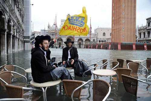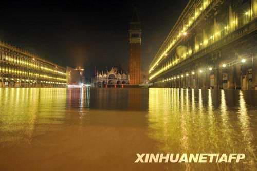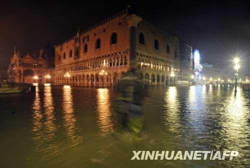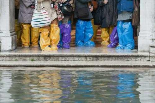 游客们坐在露天咖啡馆的桌子上,椅子已经被洪水淹没。11月30日,意大利水城威尼斯受潮汐和一股强烈的热带风暴影响再次被洪水淹没,部分地区最高水位达到1.31米。