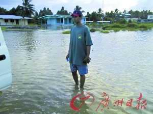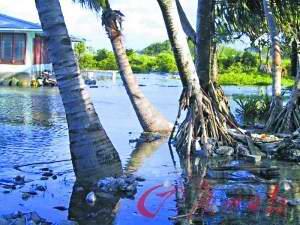 走在图瓦卢仅有的一条马路上,心里极不踏实。因为往左边看,是波涛汹涌的大海,往右看,还是大海。时不时在马路中间的洼地里还会冒出一摊海水来,让记者总感觉一不小心就会跟马路一起沉下去。富纳富提环礁长约20公里,平均宽度却只有二三十米。