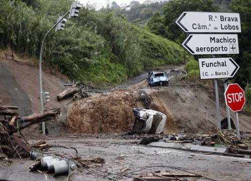 强暴风雨猛烈袭击马德拉岛,风速一度高达每小时100公里,持续数小时的暴风雨引发山洪和山体滑坡。洪水冲垮民宅,淹没道路,冲毁部分桥梁。泥石流造成许多道路堵塞。
