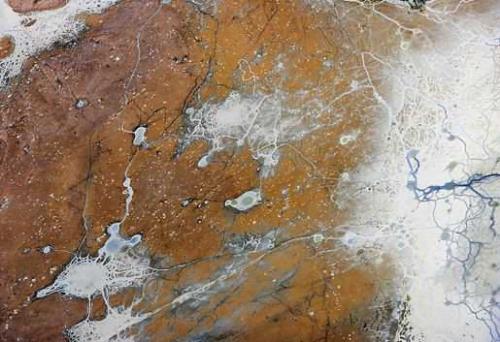 这幅照片看上去如同一幅美丽的表现主义画作,但它实际上却是普通、悲剧性的一幕,这是航拍的美国南部过度开采磷矿所产生的垃圾废弃堆。由于人类的过度开采,对周边环境造成严重破坏,从空中俯瞰这些磷矿呈现出“触目惊心”的美丽。