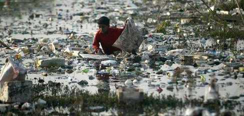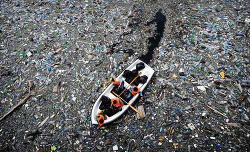 2009年,保加利亚Krichim附近,志愿者们清理满是废弃的塑料瓶和垃圾堵塞的瓦哈大坝。