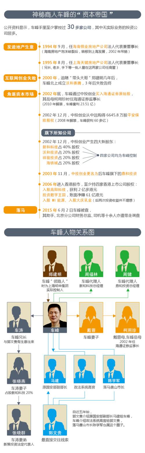 1970年出生的车峰,资产病毒式的扩张是在20年间实现的。媒体归纳其成功的秘诀时,除了肯定他的好学与勤奋外,还将原因归结于其“两男一女”的贵人。“两男”一个是带他走上资本运作之路的香港资本市场“大鳄”,一个是背靠官场以业绩做假方式炒出股市奇迹,最终身陷囹圄的人物。