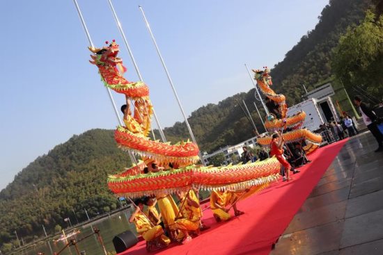 象山渔鼓、梅山舞狮、奉化布龙……3日下午,2019国际划联首届龙舟世界杯开幕式在宁波东钱湖举行,在这些极具宁波当地特色的演出中,一群奉化少年让人印象深刻。身形矫健的舞龙少年倏地跃上队友肩头,挺直身板,将龙头高高举起,一条金龙犹如腾云驾雾,直上云霄。