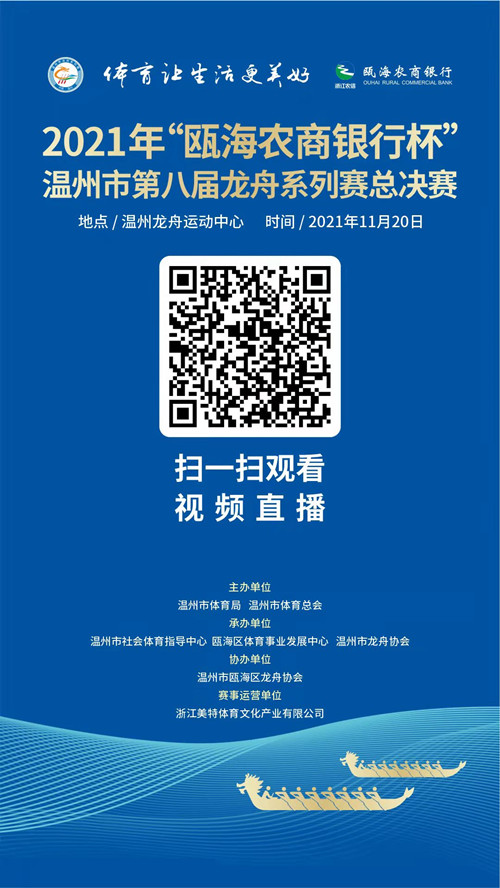 据悉,本次比赛由温州市体育局、温州市体育总会主办,温州市社会体育指导中心、瓯海区体育事业发展中心、温州市龙舟协会承办,温州市瓯海区龙舟协会协办。