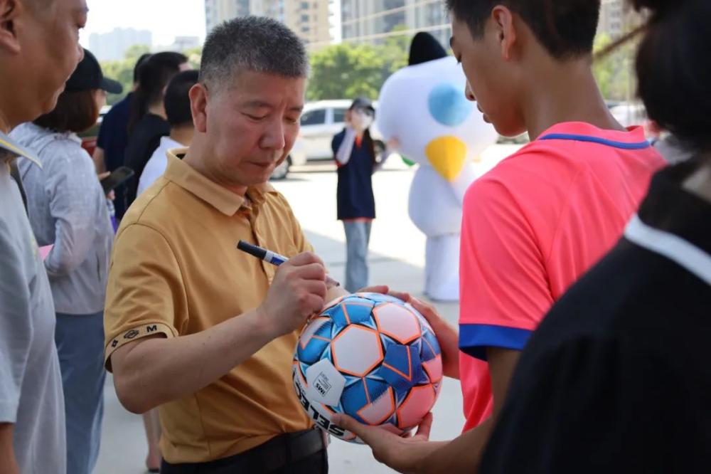 图:现场嘉宾在纪念足球上签名