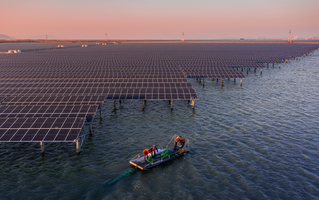 我市已建成的泰瀚550兆瓦渔光互补发电项目。