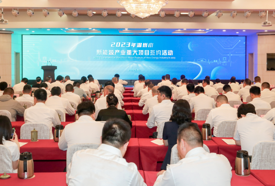 温州网讯 抢抓新能源风口,追“光”乘“风”向未来。昨天,温州市2023新能源产业重大项目签约活动举行,计划总投资1077亿元的53个新能源产业项目“加盟”温州,进一步助推新能源产业“核风光水蓄氢储”全链条从“立起来”到“强起来”,让温州加速迈向全国新能源产能中心和应用示范城市。
