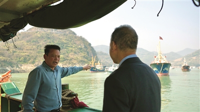 渔民向农行温州分行客户经理介绍今年出海计划。