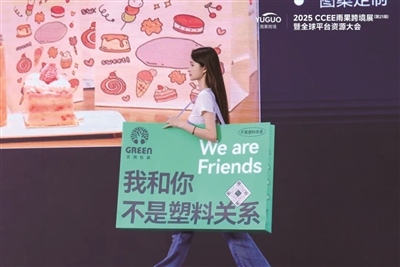 古润包装展示象征企业文化的纸袋,新颖的设计吸引不少客商目光。