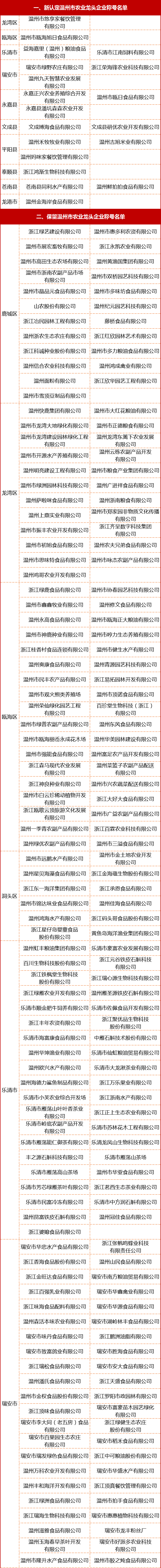 温州网讯 农业龙头企业和粮油骨干企业,对构建现代农业产业体系和保障粮食安全起着重要作用。
