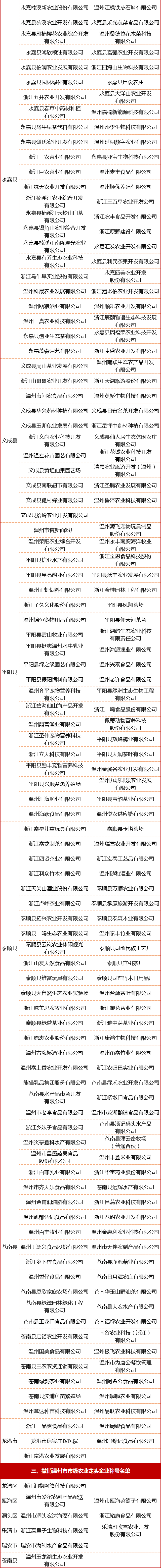 2024年度温州市农业龙头企业名单