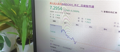 4月23日14点56分,美元兑人民币汇率为7.2954。 杨帆 摄