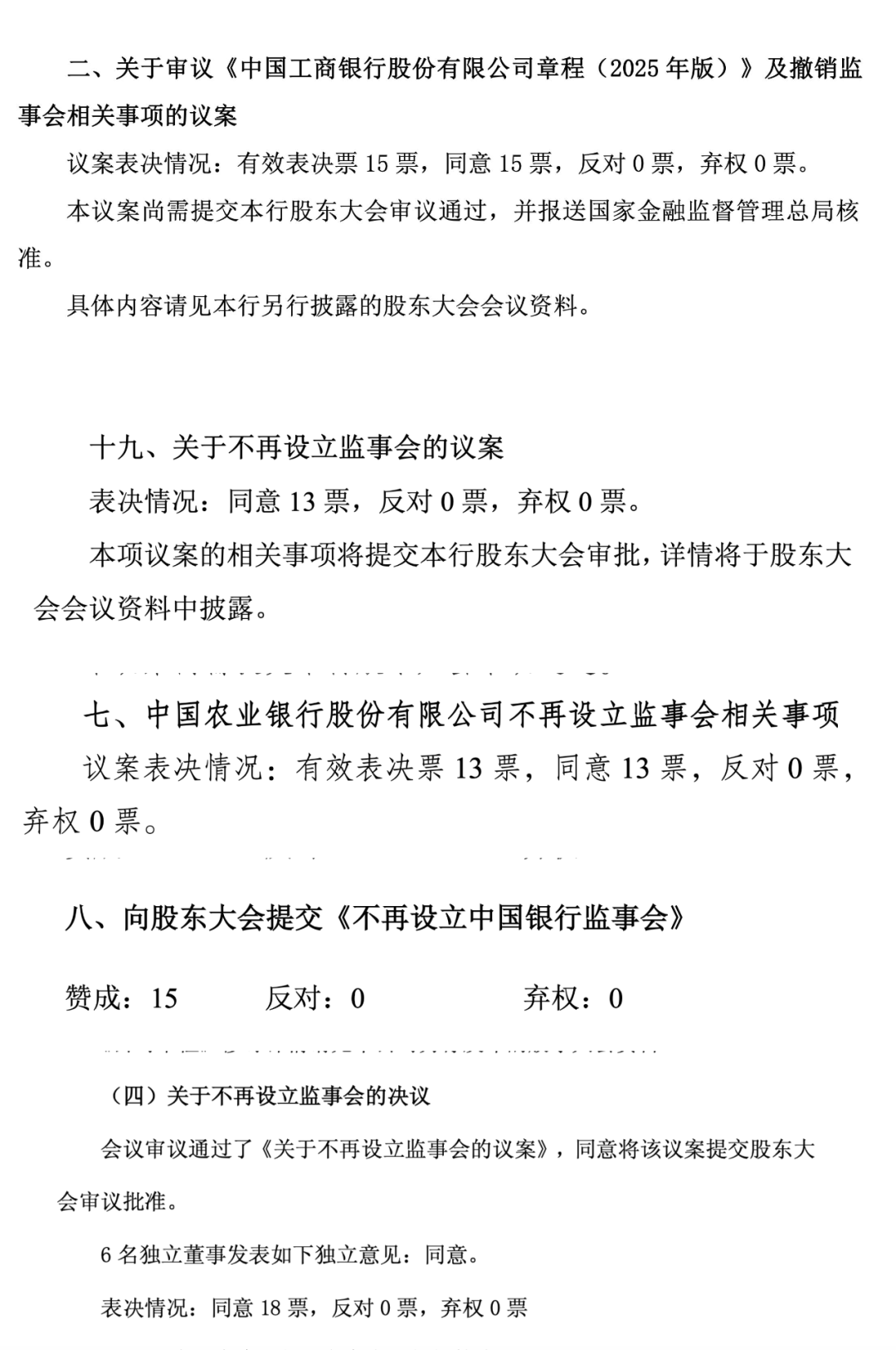 5家银行董事会决议截图,由上至下分别为:工商银行、建设银行、农业银行、中国银行和交通银行。