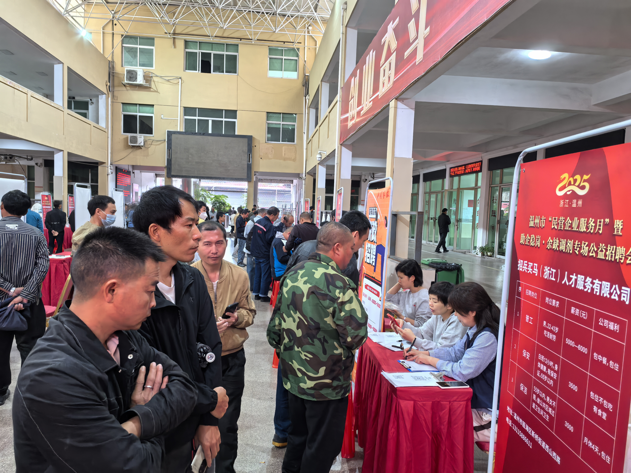 5月5日上午,2025温州市“民营企业服务月”暨助企稳岗·余缺调剂专场公益招聘会在温州市劳动力市场举行,以“线下+线上”双轨招聘模式,精心组织32家企业参与,发布1562个岗位。