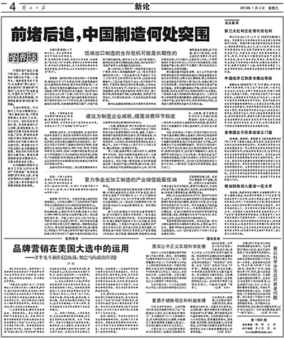 2013年1月2日《解放日报》以温州为例,讲中国制造如何突围。