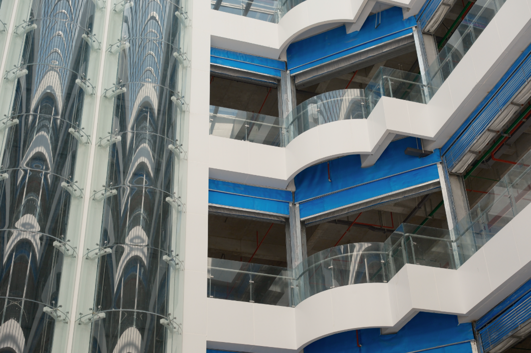 记者在温州北站站东综合楼看到,项目外部装修以及扶梯等配套设置已经完成,内部基础建设、观光电梯、宴会厅预留空间、内部停车场等已经施工完毕。