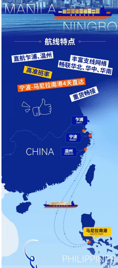 马尼拉港不仅是菲律宾最大的港口,更是东南亚地区的国际航运枢纽港之一。此次开通的马尼拉快线依次挂靠嘉兴港、宁波舟山港、温州港、马尼拉港,搭建起浙江沿海直抵菲律宾核心港口的黄金水道。该航线的开通是宁波远洋深耕东南亚航运市场、全力推动航线服务提质升级的重要体现,更是浙江省海港集团、宁波舟山港集团高效协同港航资源,助推浙江外贸企业更快“走出去”的务实举措。